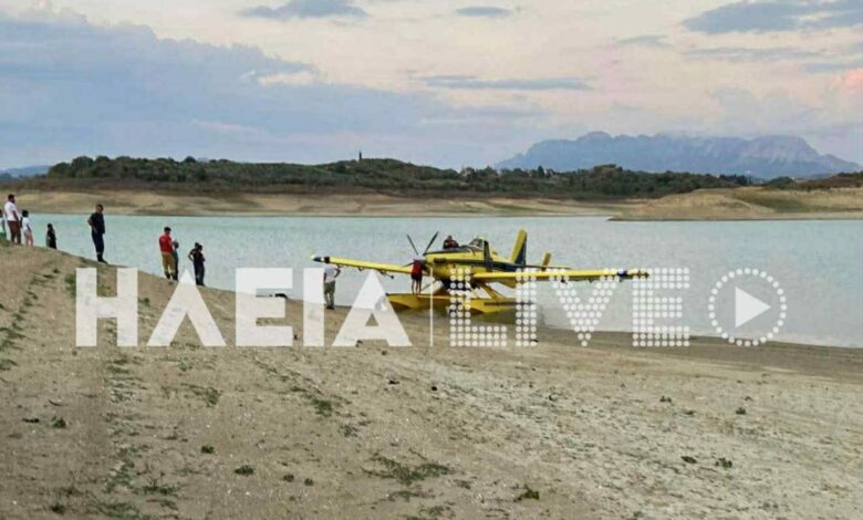 Αεροσκάφος Air Tractor που επιχειρούσε σε πυρκαγιά ακινητοποιήθηκε στη λίμνη Πηνειού