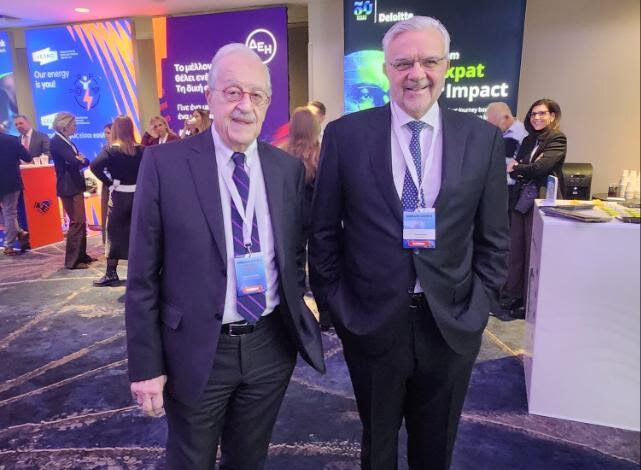 O Διευθύνων Σύμβουλος και Πρόεδρος Εκτελεστικής Επιτροπής του ΔΣ της Τράπεζας Πειραιώς, Χρήστος Μεγάλου, με τον Εκτελεστικό Πρόεδρο του Δ.Σ. του Ομίλου IMITHEA, Θέμο Χαραμή