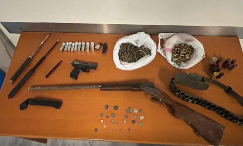 Σημειώνεται ότι, ο ανωτέρω συνελήφθη σήμερα καθώς σε υπαίθριο χώρο ιδιοκτησίας του βρέθηκε και κατασχέθηκε οπλισμός, φυσίγγια κ.α. αντικείμενα.