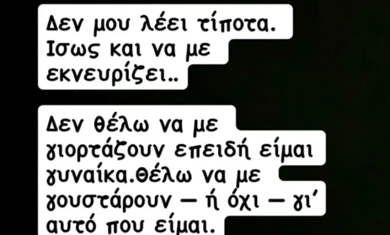 «Με ενοχλούν τα “χρόνια πολλά” για τη Γιορτή της Γυναίκας. Δεν μου λέει τίποτα. Ίσως και να με εκνευρίζει. Δεν θέλω να με γιορτάζουν επειδή είμαι γυναίκα. Θέλω να με γουστάρουν -ή όχι- γι’ αυτό που είμαι. Το ότι γεννήθηκα γυναίκα… Απλώς έτυχε», ανέφερε χαρακτηριστικά η Αννίτα Πάνια σε story που δημοσίευσε.