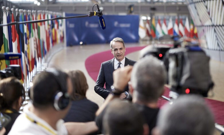 Ο πρωθυπουργός Κυριάκος Μητσοτάκης κάνει δηλώσεις μετά το Ευρωπαϊκό Συμβούλιο στις Βρυξέλλες