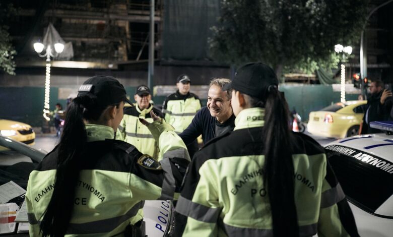 Ένα από τα δεκάδες σημεία στην Αθήνα που η Ελληνική Αστυνομία κάνει αλκοτέστ σε οδηγούς, επισκέφθηκε το βράδυ του Σαββάτου (13/12/25) ο Πρωθυπουργός Κυριάκος Μητσοτάκης, συνομιλώντας με τις γυναίκες και τους άνδρες της ΕΛ.ΑΣ. που είχαν υπηρεσία, τους οποίους συνεχάρη για το έργο τους και τους ευχαρίστησε για την άοκνη προσφορά τους, μέρα και νύχτα, καθ’ όλη τη διάρκεια του έτους.