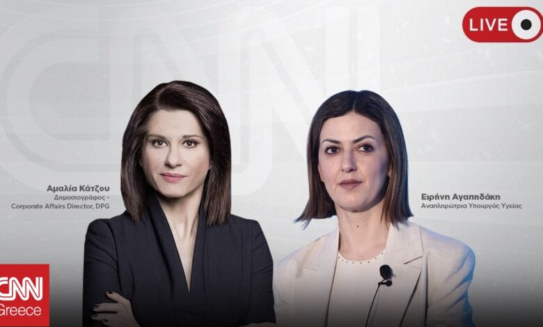 Για θέματα της δημόσιας υγείας και της επικαιρότητας μιλά στο CNN Greece η αναπληρώτρια υπουργός Υγείας Ειρήνη Αγαπηδάκη, σε μια live συνέντευξη με τη δημοσιογράφο και Corporate Affairs Director του ομίλου DPG, Αμαλία Κάτζου.
