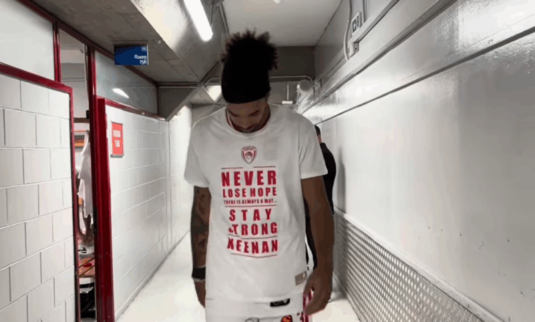 Η παρακάμερα της αναμέτρησης με το μπλουζάκι στήριξης στον Κίναν Έβανς