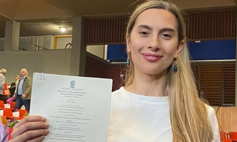 Η ηθοποιός μοιράστηκε την χαρά της με τους ακολούθους της στον προσωπικό της λογαριασμό στο Instagram την Παρασκευή 7 Νοεμβρίου, δημοσιεύοντας φωτογραφίες από την ορκωμοσία στο Εθνικό Καποδιστριακό Πανεπιστήμιο Αθηνών.