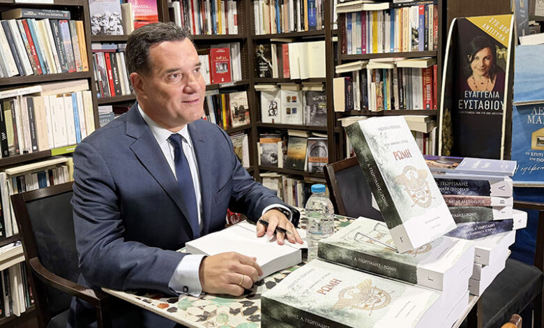 Το μεσημέρι της Παρασκευής 12 Δεκεμβρίου 2025, ο Άδωνις Γεωργιάδης έδωσε το «παρών» σε κεντρικό βιβλιοπωλείο της Αθήνας για την υπογραφή του νέου του συγγραφικού έργου. Ο Υπουργός Υγείας υποδέχθηκε αναγνώστες και συνομίλησε μαζί τους για τη «Ρώμη», το έκτο του βιβλίο, το οποίο κυκλοφόρησε πρόσφατα και αποτελεί έναν εκτενή ιστορικό απολογισμό της ρωμαϊκής πορείας από τις απαρχές της έως τη δύση της αυτοκρατορίας.