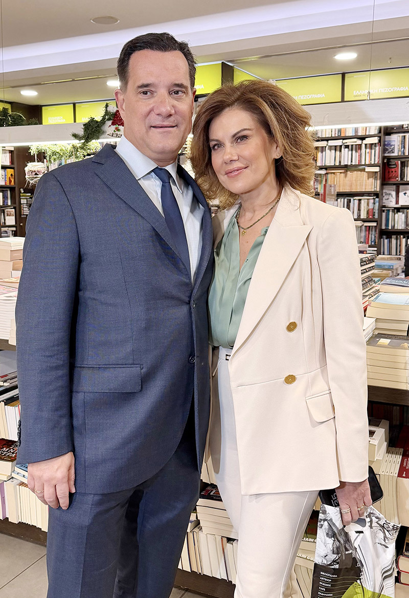 Από την εκδήλωση δεν θα μπορούσε να λείπει η Ευγενία Μανωλίδου, η οποία στέκεται αδιάλειπτα στο πλευρό του Άδωνι Γεωργιάδη σε κάθε του βήμα. Το ζευγάρι, που μετρά 16 χρόνια γάμου (από το 2009) και έχει αποκτήσει δύο γιους, μοιράστηκε ακόμα μια σημαντική στιγμή, με τη γνωστή μουσικό και παρουσιάστρια να στηρίζει έμπρακτα τη νέα συγγραφική προσπάθεια του συζύγου της.