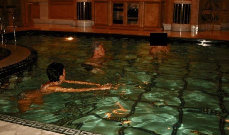 O Γκίσλεϊν Μάξγουελ και ο Μπιλ Κλίντον μαζί με άγνωστο πρόσωπο σε πισίνα