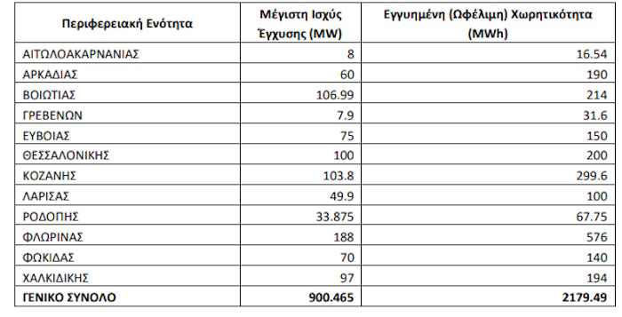 Συγκεκριμένα, πρόκειται για τα εξής έργα αποθήκευσης ανά περιοχή της χώρας: