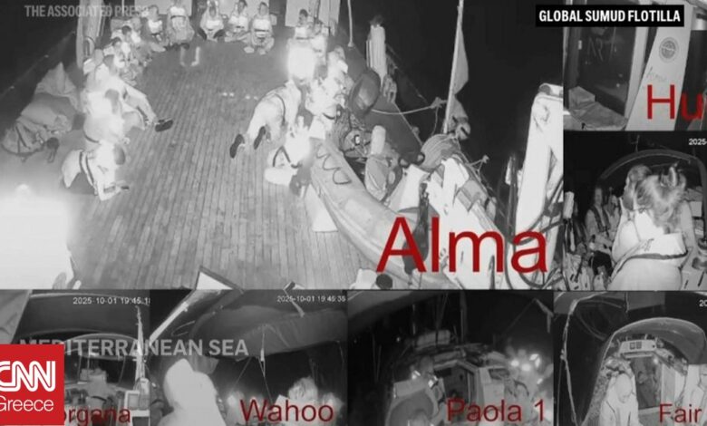 Μέλη των πληρωμάτων του Global Sumud Flotilla καταγγέλλουν στα μέσα κοινωνικής δικτύωσης πως άνδρες του πολεμικού Ναυτικού του Ισραήλ εισέβαλαν σε πλοία του στολίσκου.