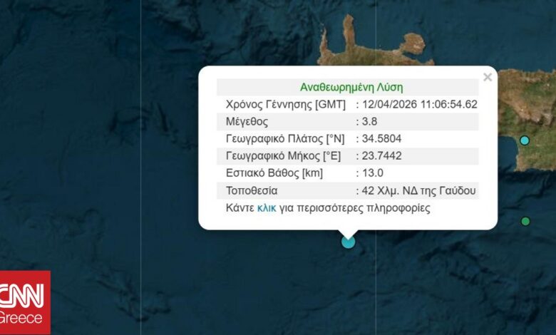 Σεισμός 3,8 Ρίχτερ ανοιχτά της Γαύδου