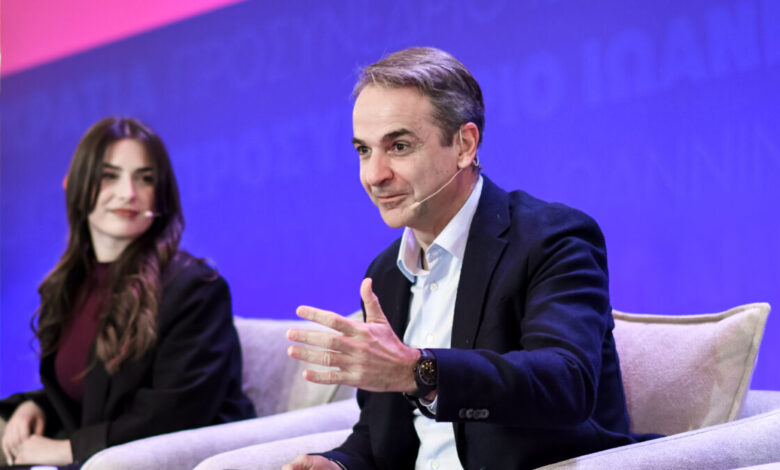 Στιγμιότυπο από την επίσκεψη του Κυριάκου Μητσοτάκη στα Ιωάννινα, στο πλαίσιο του 1ου προσυνεδρίου της Νέας Δημοκρατίας (Φωτογραφία αρχείου / ΛΕΩΝΙΔΑΣ ΜΠΑΚΟΛΑΣ / EUROKINISSI)