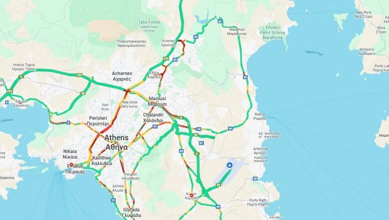 Αυξημένη κίνηση και σε τμήματα της Μεσογείων και της Κηφισιάς, στους δρόμους γύρω από το Σύνταγμα αλλά και στη Βουλιαγμένης και την Πειραιώς.