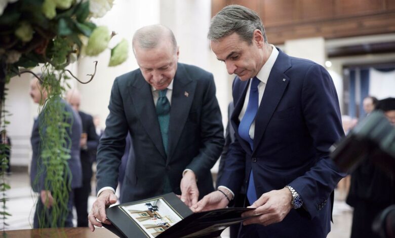 Κυριάκος Μητσοτάκης και Ρετζέπ Ταγίπ Ερντογάν φαίνεται να έχουν αποδεχθεί ότι ακόμα δεν είναι η ώρα να αγγίξουν τα «ακανθώδη» ζητήματα, όπως τα χαρακτήρισε ο Τούρκος πρόεδρος αλλά αυτό δεν σημαίνει ότι οι σχέσεις ανάμεσα στις δυο χώρες πρέπει να παραμένουν «στα κόκκινα».