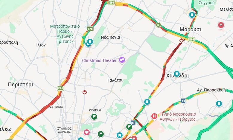 Αυξημένη είναι η κίνηση επίσης στη λεωφόρο Κηφισίας, τη λεωφόρο Μεσογείων και στο κέντρο της Αθήνας.