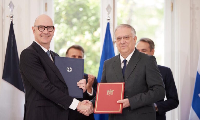 Η δήλωση προθέσεων που υπέγραψε ο Τάκης Θεοδωρικάκος με τον Ρολάν Λεσκύρ, αφορά την ενίσχυση της συνεργασίας Ελλάδας και Γαλλίας με έμφαση στην έρευνα, την καινοτομία, την πυρηνική ασφάλεια και την ανταλλαγή τεχνογνωσίας.
