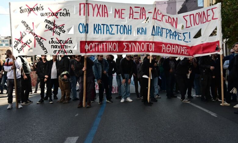 Πανεκπαιδευτικό συλλαλητήριο φοιτητών πραγματοποιήθηκε σήμερα Πέμπτη 6/11 σε Αθήνα και Θεσσαλονίκη καθώς και σε άλλες 40 πόλεις της περιφέρειας.