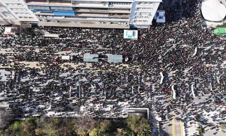 Η διαδήλωση για τα τρία χρόνια από το δυστύχημα των Τεμπών από ψηλά