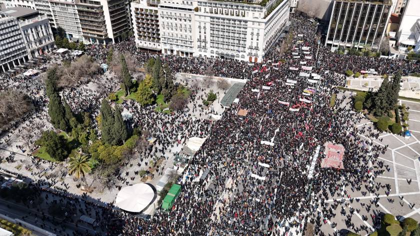 3 χρόνια από τα Τέμπη: Η διαδήλωση στο Σύνταγμα από ψηλά