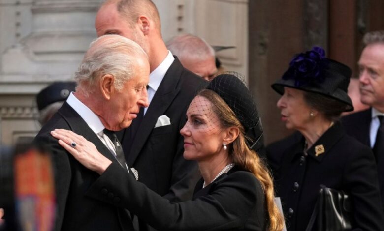 Η πριγκίπισσα Κέιτ με τον Βασιλιά Κάρολο μετά το πέρας της καθολικής κηδείας