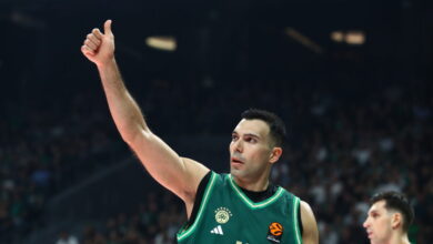 Ο Κώστας Σλούκας με τη φανέλα του Παναθηναϊκού/ (ΜΑΡΚΟΣ ΧΟΥΖΟΥΡΗΣ /…