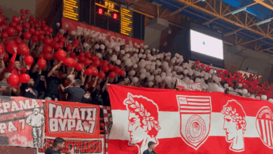 Εντυπωσιακή ατμόσφαιρα με λευκά και κόκκινα μπαλόνια από τους φίλους των Πειραιωτών
