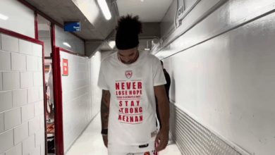 Η παρακάμερα της αναμέτρησης με το μπλουζάκι στήριξης στον Κίναν Έβανς