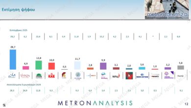 Η Νέα Δημοκρατία διατηρεί ξεκάθαρη πρωτιά έναντι του ΠΑΣΟΚ με 15,9 μονάδες σύμφωνα με την δημοσκόπηση της Metron Analysis, ενώ…