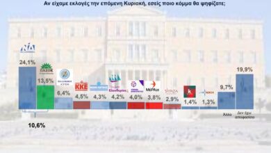 Δημοσκόπηση Interview: Προβάδισμα 10,6 μονάδων της ΝΔ έναντι του ΠΑΣΟΚ