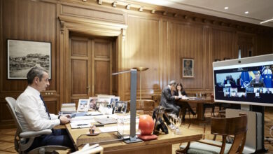 Ο πρωθυπουργός, Κυριάκος Μητσοτάκης στην τηλεδιάσκεψη ηγετών που συμμετέχουν στη «Συμμαχία…