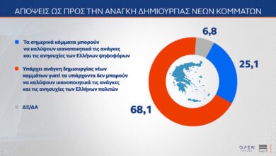 Η Νέα Δημοκρατία αυξάνει τα ποσοστά της και παραμένει πρώτη με μια διαφορά 15,6 μονάδων από το ΠΑΣΟΚ σύμφωνα…