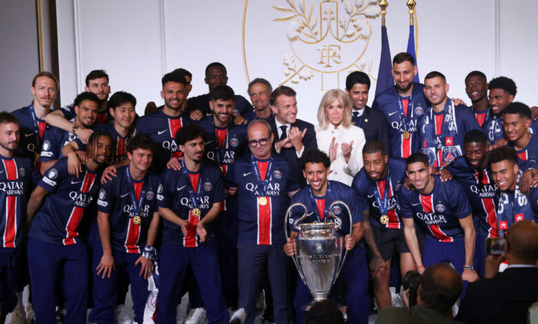 Μετά την παρέλαση στο Σανζ Ελιζέ, η Παρί Σεν Ζερμέν έφτασε στο Palais de l’Élysée, όπου την περιμένε ο Εμανουέλ Μακρόν μαζί με τη σύζυγό του, Μπριζίτ.