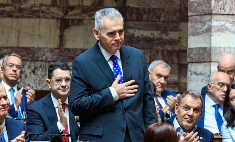 Ο Μάξιμος Χαρακόπουλος, έλαβε τη θέση αυτή μετά τον αιφνίδιο θάνατο του Απόστολου Βεσυρόπουλου, για τον οποίο έκανε αναφορά στον λόγο του και ο Κυριάκος Μητσοτάκης.