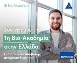 Συνεχίζονται οι αιτήσεις για την πρώτη Βιο-Ακαδημία στην Ελλάδα, που υλοποιείται από τη DEMO, ηγέτιδα εταιρεία στον κλάδο της φαρμακοβιομηχανίας σε συνεργασία με την TÜV NORD Ελλάδας, τον επίσημο Οργανισμό Επιθεώρησης, Πιστοποίησης και Εκπαίδευσης, μέλος του Γερμανικού Ομίλου TÜV NORD.