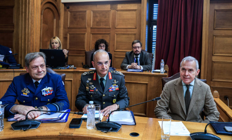 Ο Α/ΓΕΑ Δημητριάδης (αριστερά), ο Α/ΓΕΕΘΑ Χούπης (κέντρο) και ο υφυπουργός Εθνικής Άμυνας Θανάσης Δαβάκης (δεξιά) / ΓΙΩΡΓΟΣ ΚΟΝΤΑΡΙΝΗΣ / EUROKINISSI