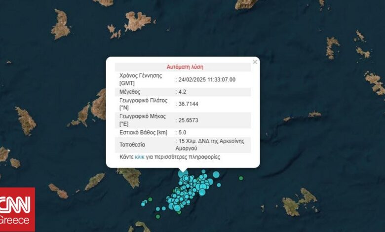 Ο σεισμός σημειώθηκε 14 χλμ. ΝΔ της Αρκεσίνης Αμοργού και είχε εστιακό βάθος 5 χιλιόμετρα.