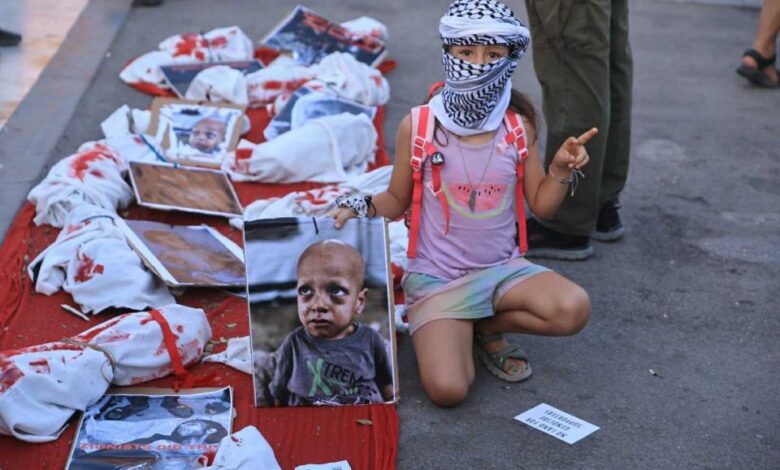 Φωτογραφία σκελετωμένου παιδιού από τη Γάζα στα χέρια διαδηλωτών στο Σύνταγμα