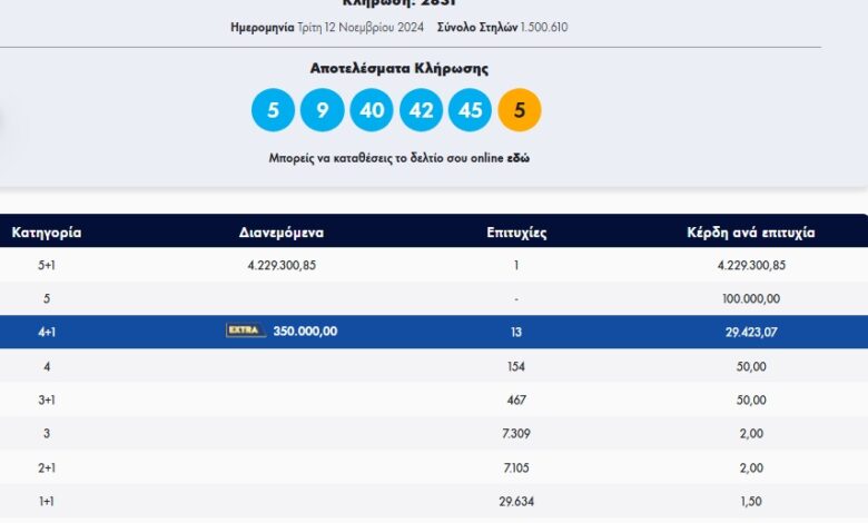 Τζόκερ: Οι τυχεροί αριθμοί της αποψινής κλήρωσης για πάνω από 4 εκατομμύρια ευρώ