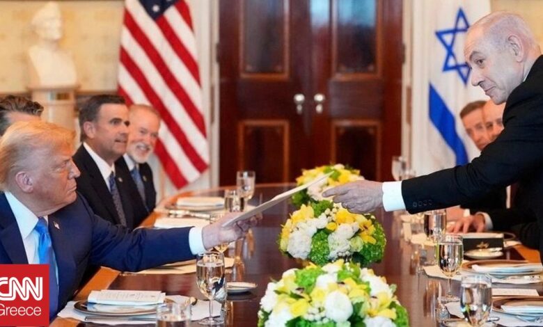 Ο Νετανιάχου επιμένει ότι ο πόλεμος μπορεί να τελειώσει μόνο αφού η Χαμάς καταθέσει τα όπλα της και απελευθερώσει τους υπόλοιπους 48 ομήρους, και η ηγεσία της ομάδας που έχει χαρακτηριστεί ως τρομοκρατική από τις ΗΠΑ εγκαταλείψει τη Γάζα. Εάν η Χαμάς δεν αποδεχτεί αυτές τις απαιτήσεις, το Ισραήλ θα αναγκάσει την ομάδα σε πλήρη παράδοση με αεροπορικές και χερσαίες επιθέσεις, μια στρατηγική που δεν ευθυγραμμίζεται με το όραμα του Τραμπ για ένα τέλος στην σχεδόν διετή σύγκρουση μέσα από διαπραγματεύσεις.